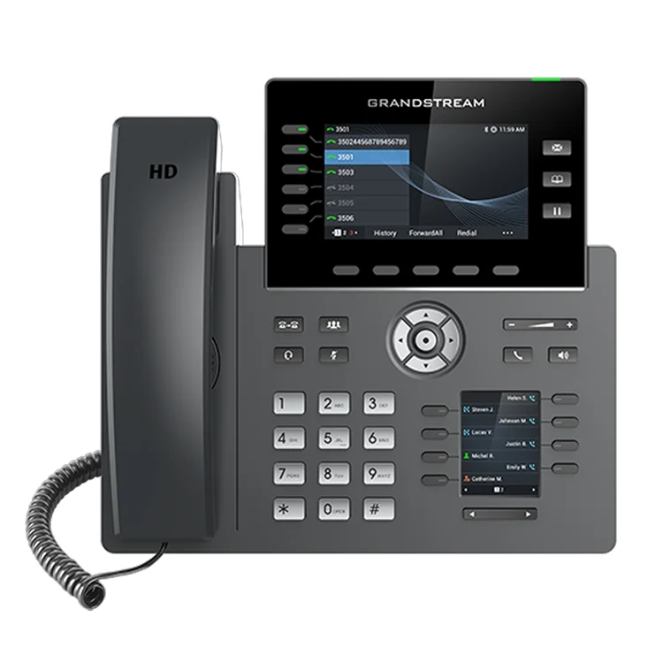 Grandstream GRP2616 Téléphone IP 6 Lignes avec 6 comptes SIP Gigabit de qualité opérateur conçu avec un provisionnement sans contact pour un déploiement de masse et une gestion facile, 6 touches de ligne avec jusqu’à 6 comptes SIP, Deux écrans LCD avec touches BLF numériques Audio HD, combiné et haut-parleur avec prise en charge de l’audio large bande, Protection de niveau entreprise comprenant un démarrage sécurisé, des images de micrologiciel double et un stockage de données crypté, Wi-Fi double bande 802.11 a/b/g/n/ac intégré, Deux ports Gigabit Ethernet 10/100/1000 Mbps à détection automatique et PoE intégré, Plaques frontales échangeables pour permettre une personnalisation facile du logo, Bluetooth intégré.