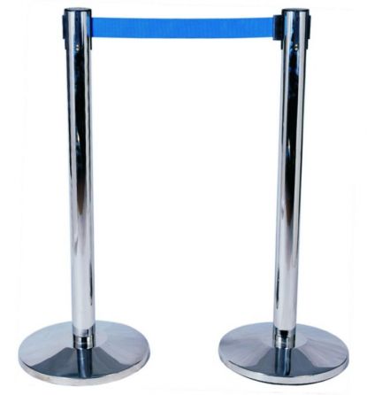 Poteau de guidage retractable en acier Inoxidable finition miroir à bande bleu 3M avec système de verouillage Dimension 320*63*910mm